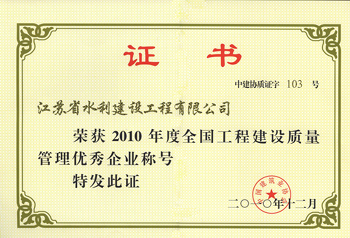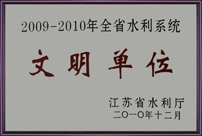 公司連續多年被評為全國水利建設先進集體、全國優秀水利企業、全國安全生產和質量管理先進單位、江蘇省文明單位、建筑業百強企業,榮獲江蘇省“五一勞動獎章”。