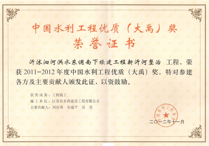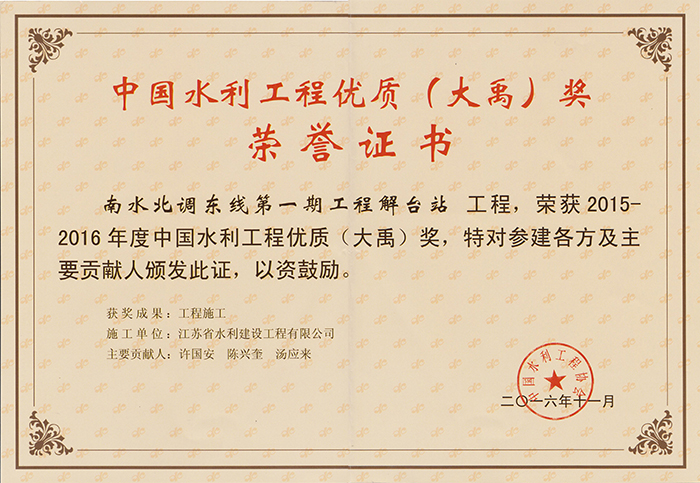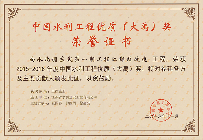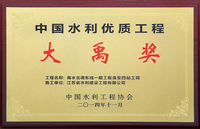 公司連續多年被評為全國水利建設先進集體、全國優秀水利企業、全國安全生產和質量管理先進單位、江蘇省文明單位、建筑業百強企業,榮獲江蘇省“五一勞動獎章”。