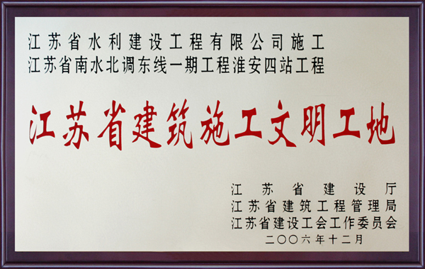 公司連續多年被評為全國水利建設先進集體、全國優秀水利企業、全國安全生產和質量管理先進單位、江蘇省文明單位、建筑業百強企業,榮獲江蘇省“五一勞動獎章”。