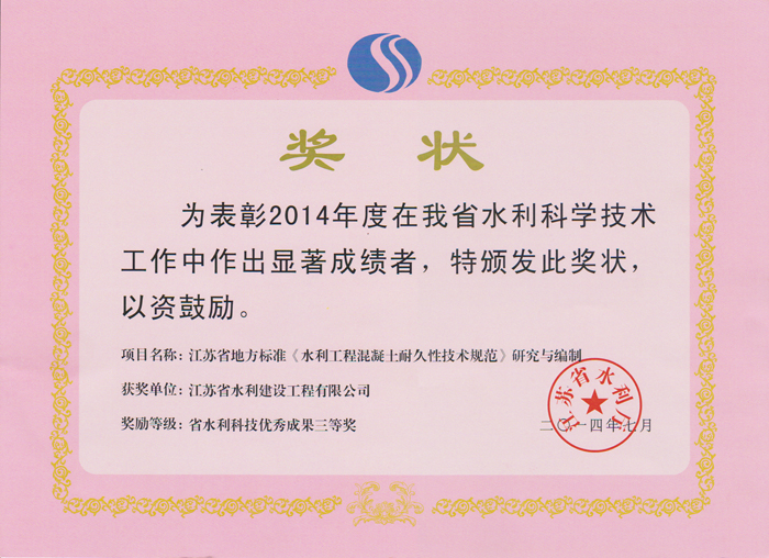 省水利科技優秀成果三等獎