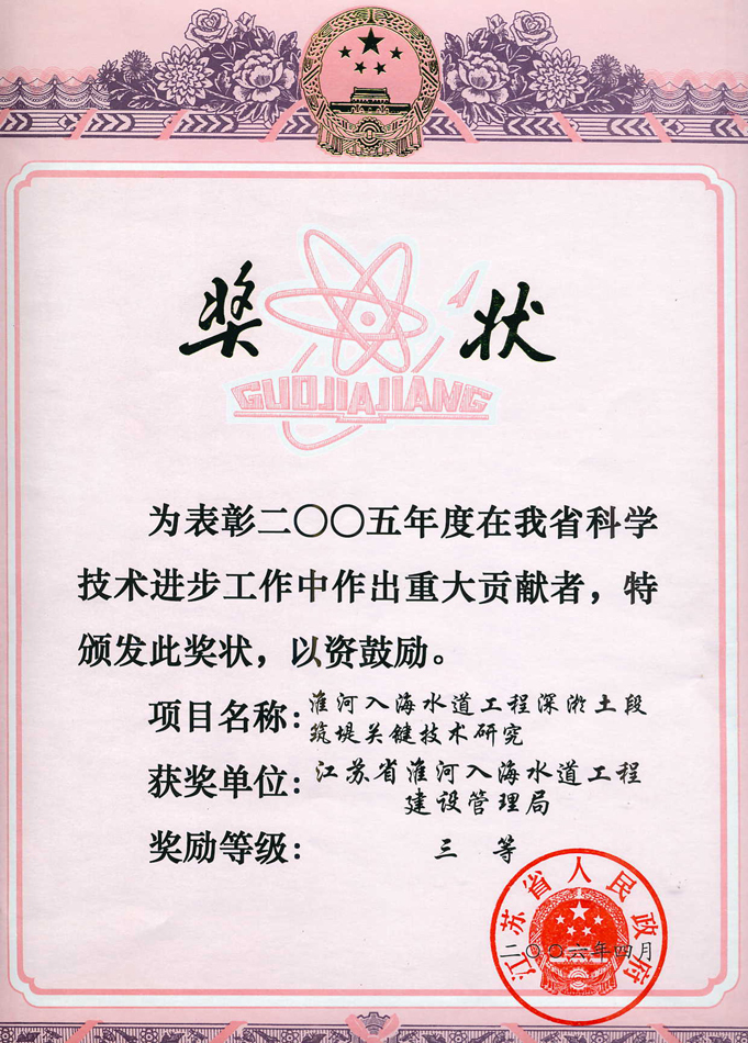 公司實施科技興企戰略,建立完善科技創新體系,形成了一批具有自主知識產權的科技成果或工法。公司成立了國內水利系統首家企業院士工作站,兩次承擔修編了江蘇水利工程定額,1項工程獲中國土木工程詹天佑獎;6項科技成果獲大禹水利科學技術獎、江蘇省政府科技進步獎和江蘇水利科技成果獎;實施了4項省水利科技重點項目;完成了國家級工法1項,省級工法4項;獲得國家實用新型專利15項;13個QC成果獲國家優秀質量管理獎。